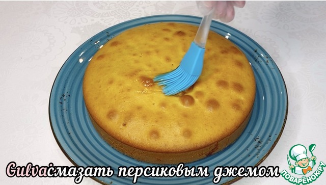 Готовый пирог проверяем деревянной шпажкой. Остужаем и смазываем джемом.