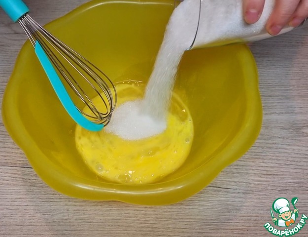 Взбиваем 2 яйца с 1 стаканом сахара.