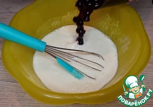 Добавим молоко и один стакан варенья и хорошо перемешиваем.