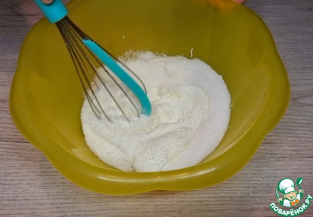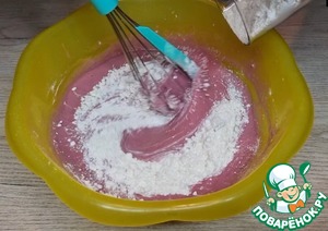 Добавляем 2 стакана муки и 2 ч. л. соды. Хорошо перемешиваем.