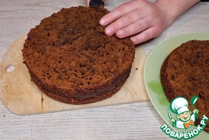 Готовый корж делим на 2 или 3 части в зависимости от высоты.