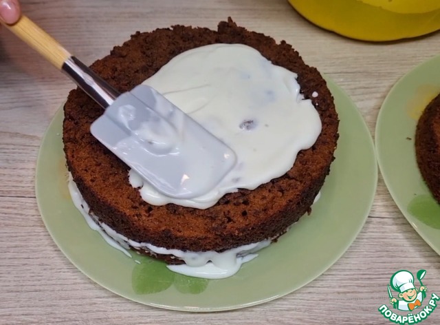 Коржи обильно промазываем полученным кремом, чтобы хорошо пропиталось.