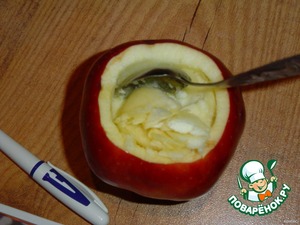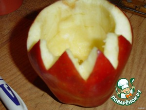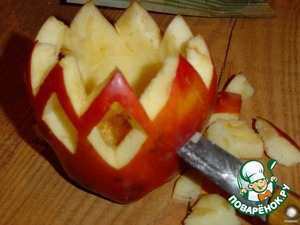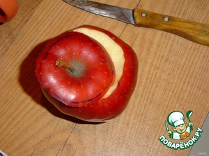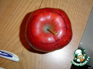 1. На кожуре яблока намечаем контур для вырезания сердцевины