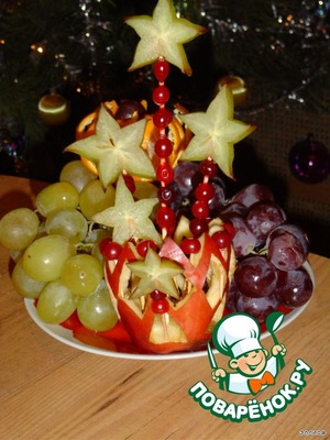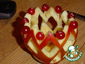 7. Верхний край яблока украшаем клюквой, нанизав ягоды на зубочистки