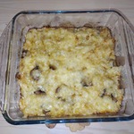 5. Отправляем в разогретую до 180С духовку на 30 мин, затем достаем присыпаем натертым твердым сыром и еще на 10-15 мин. в духовку.
