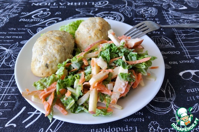 Салат из куриного филе, свежей моркови, сочного яблока и пекинской капусты. Очень простой и незатейливый. Но вкусный, сочный, свежий, вполне сытный. Попробуйте!