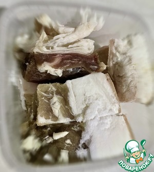 Может быть, это и неправильно! Может, это и вредно! Но я это мясосальное великолепие прежде всего хорошенько промыл. А потом просушить надо, конечно, бумажными полотенцами и дать слегка проветриться. |