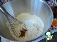В глубокой миске смешать просеянную муку, соль, мускатный орех.