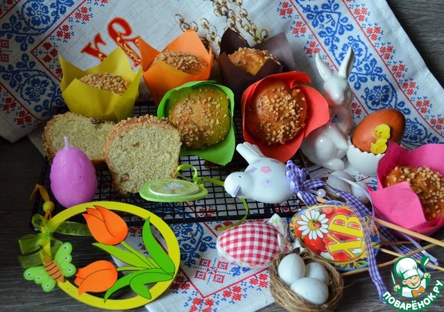 Встретила очень интересный рецепт кулича "Мазанец", испекла, понравился. В меру сладкий, с нежными ароматами лимона и мускатного ореха, с миндальной шапочкой..., рекомендую и Вам... Отличный вариант порционных подарочных куличей!