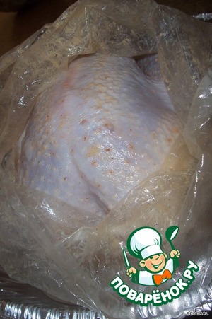 за 30 минут до готовности открыть пакет и зарумянить индейку.