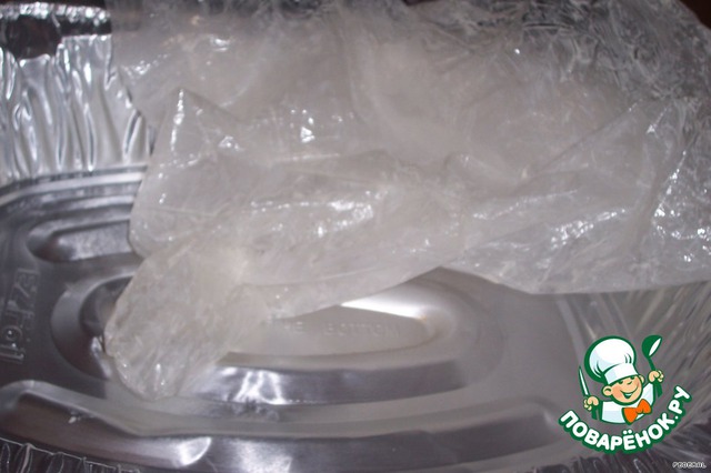 остальное масло растопить и обильно намазать пакет для запекания в середине.