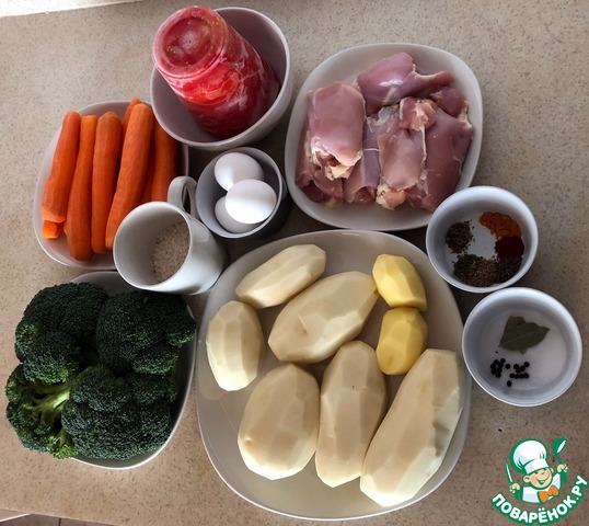 Ингредиенты для «Куриные тефтели с брокколи и картофелем»: