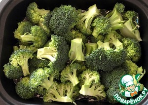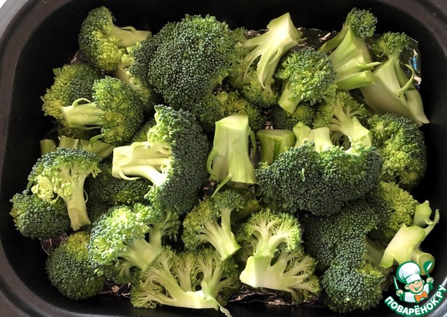 12. Приготавливаем отварную брокколи на пару в течении 5-7 минут и охлаждаем ее на тарелке, чтобы она не переварилась.