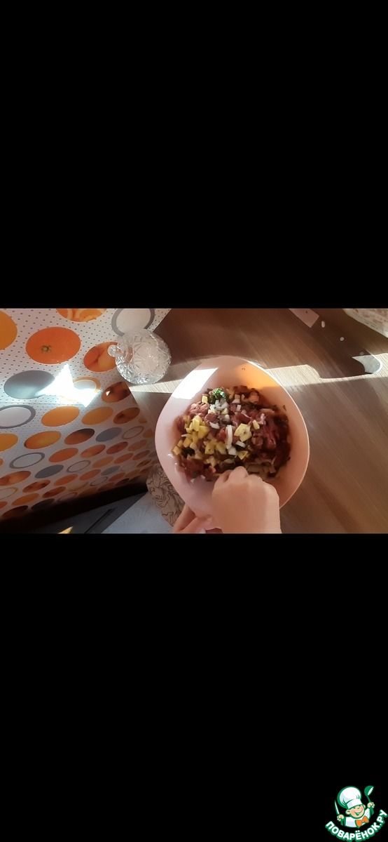 Берём муку, яйцо, соль, масло и воду и замешиваем тесто. Затем даём ему настояться