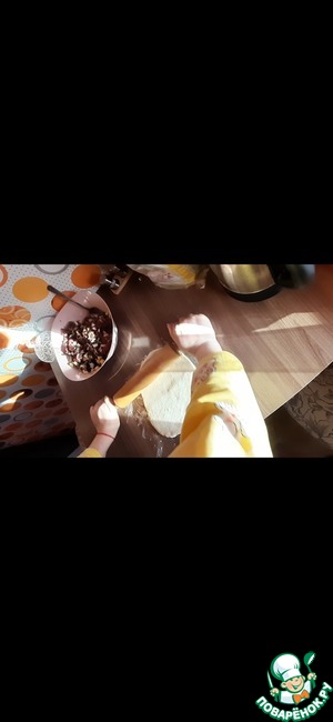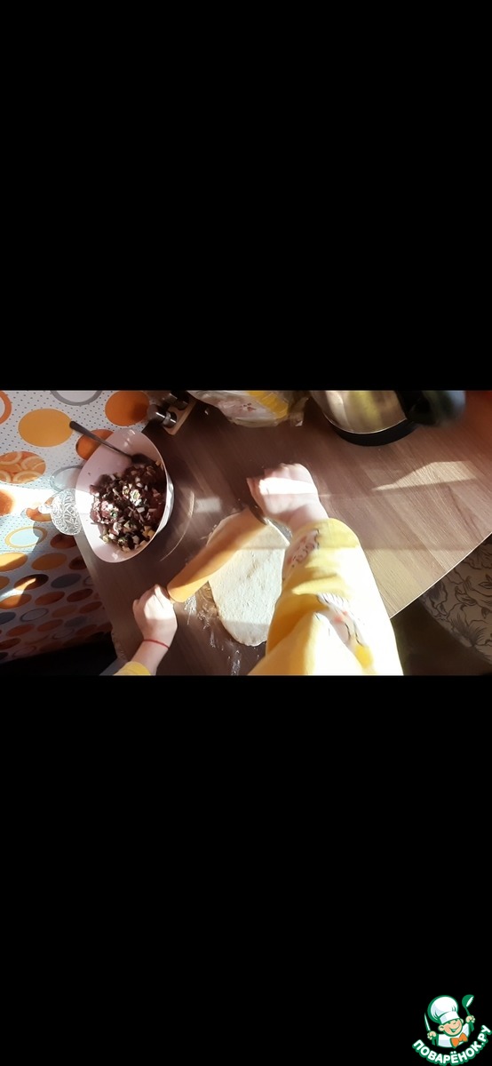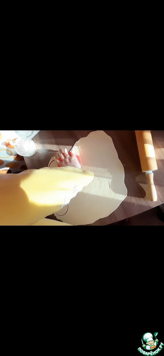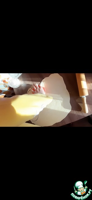 Пока мы готовили начинку, у нас подошло тесто, раскатываем его
