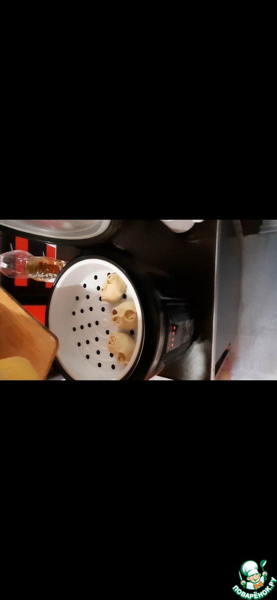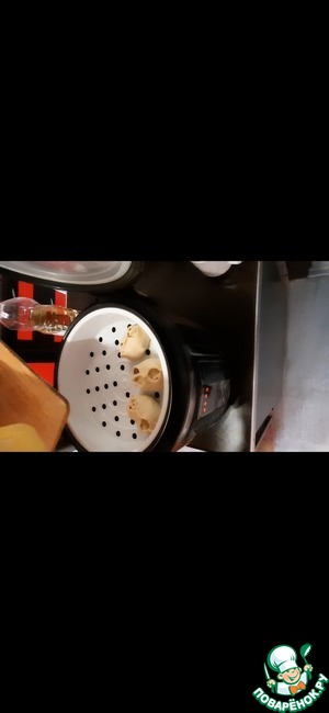 Укладываем их в мультиварку, и устанавливаем режим на пару (35 минут). Мы налили 1.5 л воды, и добавили 3 листочка лаврового листа