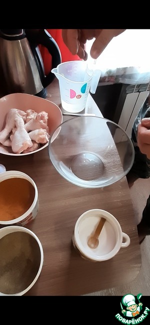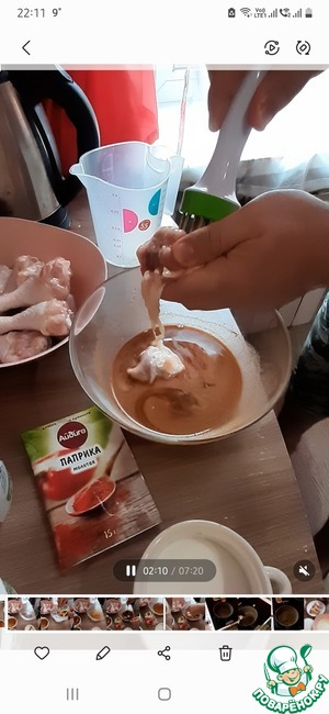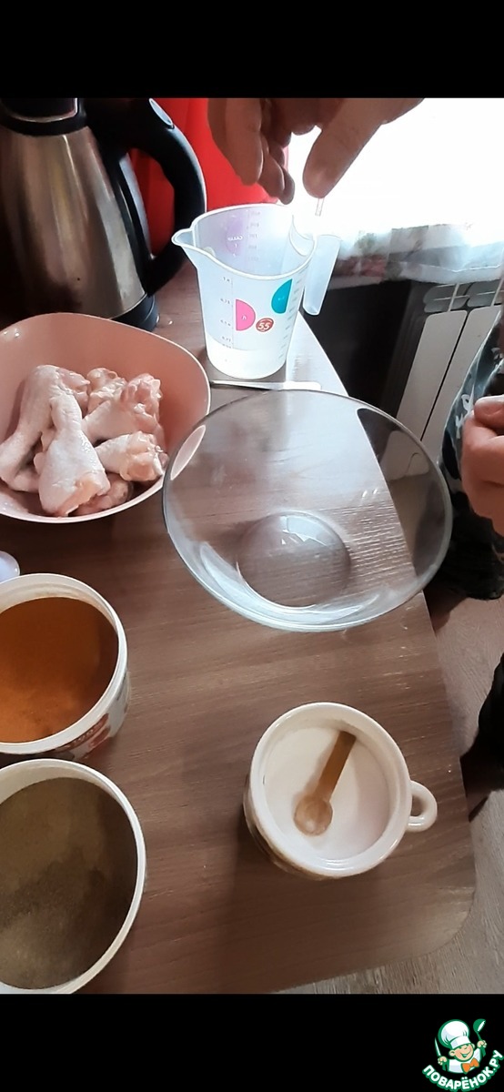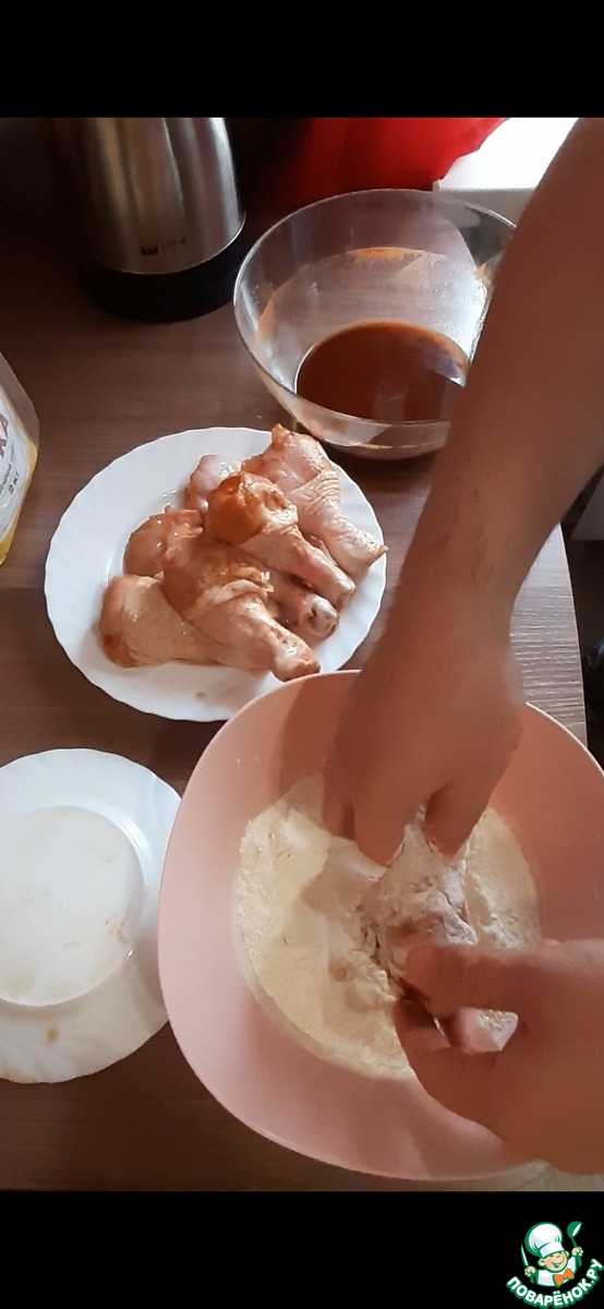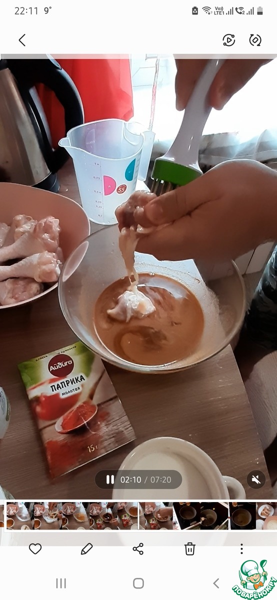 В куриных голенях делаем проколы, чтобы курица лучше пропиталась в маринаде, и маринуем 30 минут