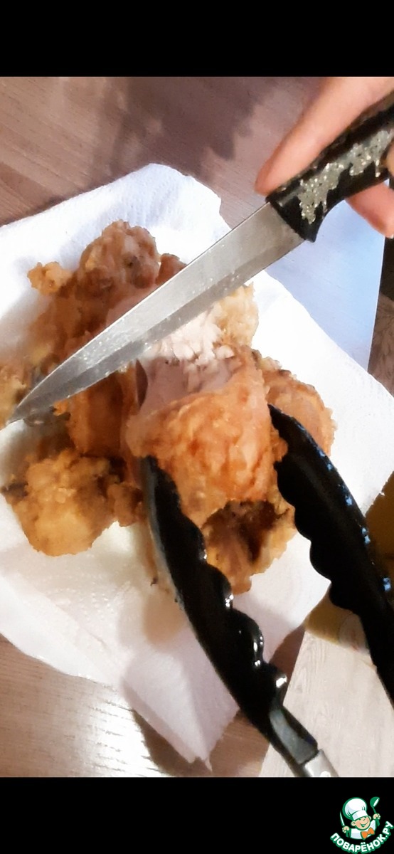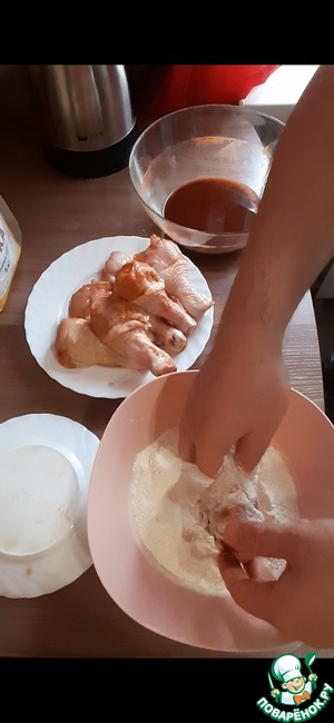 Обваливаем голень в муке, и затем отправляем в кипящее масло. жарить на среднем огне 25 минут