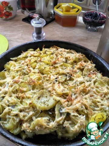 [+4]Совет для тех, кто воспользуется рецептом! Не нужно класть на пергамент или фольгу, если не хотите потом её кушать с картофелем! Проще вымыть противень! ИМХО. Большое спасибо за вкусный и не хлопотный рецепт!