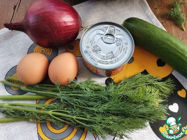Немудрёный, свежий и лёгкий салат из рыбных консервов. Многим знакомый. Но один небольшой штрих - и привычный вкус салата приобретает новый оттенок. Заходите, пробуйте!