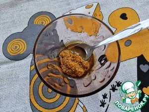 Перемешать растительное масло и зернистую горчицу.