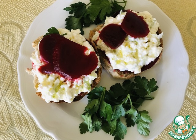 Рецепт «Бутерброды с пряной свёклой и творогом»: