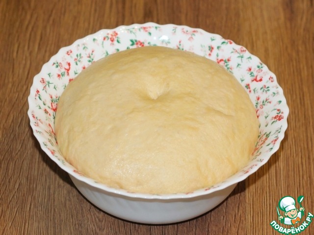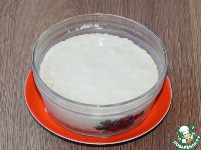 6. Смазываем миску и тесто растительным маслом (0,5 ст. л.). Накрываем миску пленкой и ставим в теплое место для подъема теста в 2,5 раза.