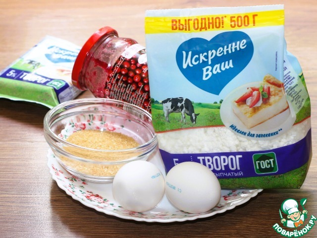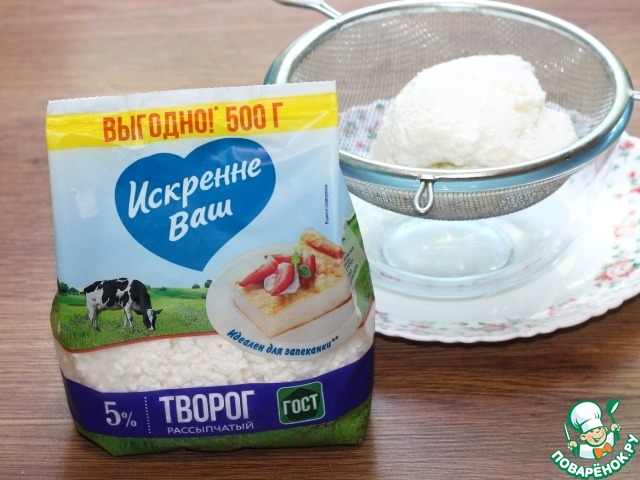 - Творог (% жир. на ваш вкус, ТМ «Искренне Ваш») — 500 г