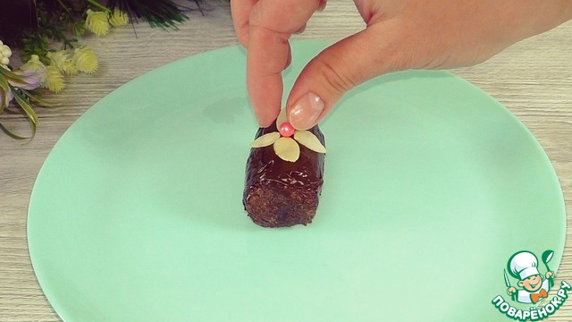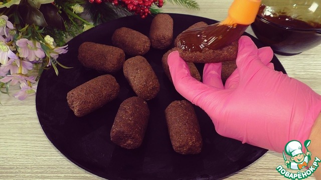 Формируем пирожное любой формы, убираем в холодильник минут на 15, можно в морозильную камеру отправить на 5 минут, сливочное масло охладится и с заготовками будет легче работать дальше.