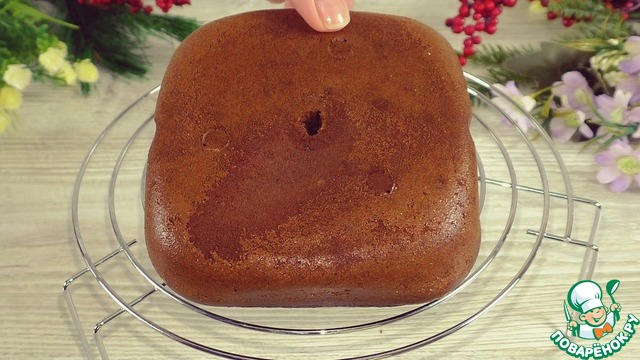 В качестве украшения я в микроволновке растопила шоколад со сливочным маслом и смазала верхнюю часть пирожного.