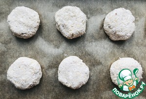 Если у вас получится слишком густое тесто, то добавьте немного сока или воды, если получится слишком жидкое тесто - добавьте овсяных хлопьев. Мокрыми руками формирую шарики, немного придавливаю и выкладываю на противень.