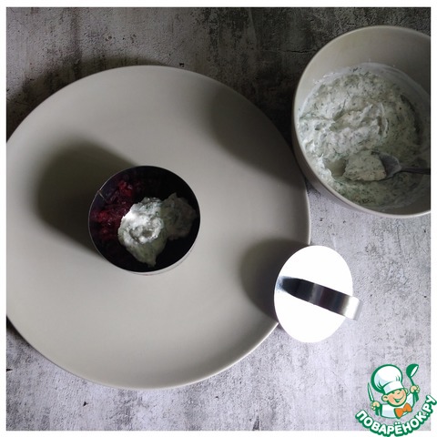 Салат я буду подавать индивидуально, формируя его при помощи кольца.