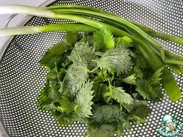 Крапиву несколько раз промываем, перемешивая и сжимая в руках (как-будто комкаете бумагу), таким образом она перестанет колоться. Даем воде стечь.