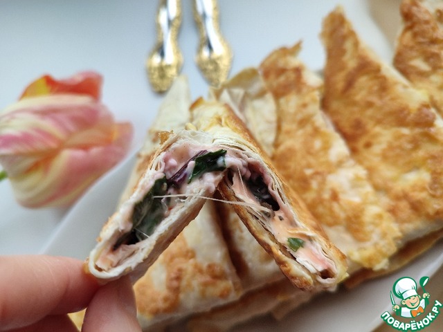 Рецепт «Треугольники с творогом и свекольной ботвой»: