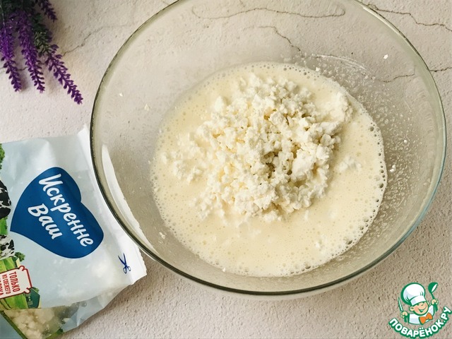 - Творог (у меня обезжиренный творог ТМ «Искренне Ваш») — 200 г