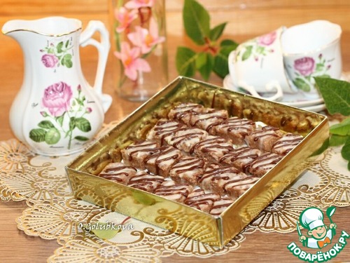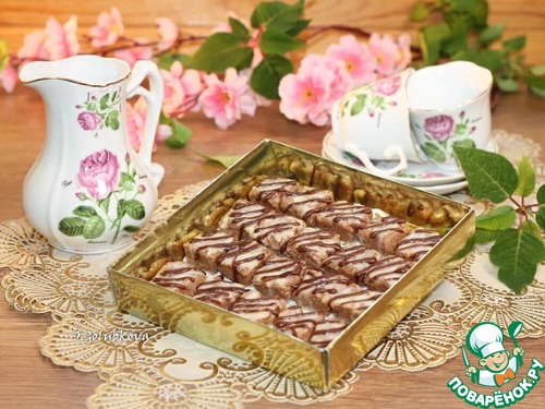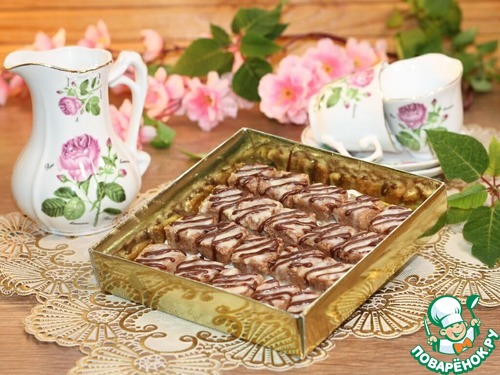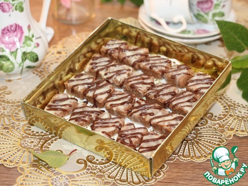 13. Охлажденный конфетный слой извлекаем из формочки и нарезаем небольшими кубиками. Верх конфет можно украсить растопленным шоколадом.