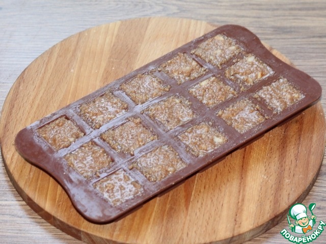 Охлаждаем конфетную массу и ставим формочку в холодильник на 3 часа или до полного застывания на ночь. Я охлаждала в морозилке.