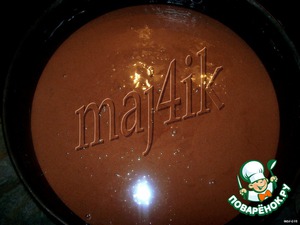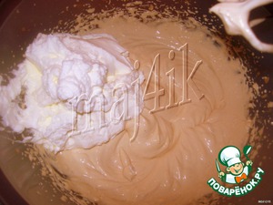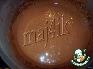 Постепенно добавлять муку с разрыхлителем и какао, постоянно помешивая.