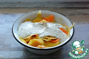 Залейте этой творожно-сливочной массой овощи и тщательно перемешайте