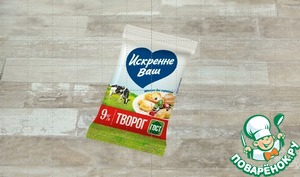 Для гратена лучше использовать творог высокой жирности. Я взяла творог "Искренне Ваш" 9%