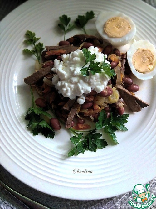 Рецепт «Салат с фасолью и зернёным творогом»: