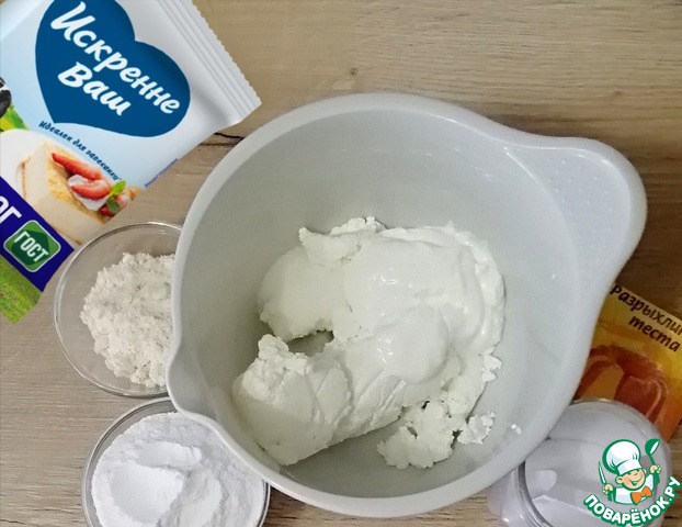 Взять творог - в рецепте использован продукт от ТМ "Искренне ваш", добавить сметану, яйцо и заменитель сахара фитпарад N7, если вы хотите готовить с обычным сахаром - добавьте его по своему вкусу.