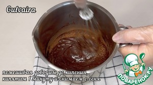 Готовим шоколадную помадку. В ковше смешиваем сахар, какао, молоко. Перемешиваем до однородности. И постоянно помешивая ставим на огонь. Как только закипит ждём 1 минуту и снимаем с огня.