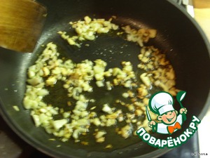 На оливковом масле слегка обжариваем лук и чеснок