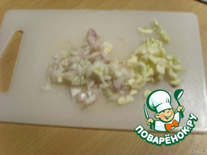 Шалот с чесноком нарезаем
