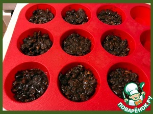 7. Все хорошо перемешиваем и формируем конфеты в силиконовых или других формочках. Форму закрываем пищевой пленкой.