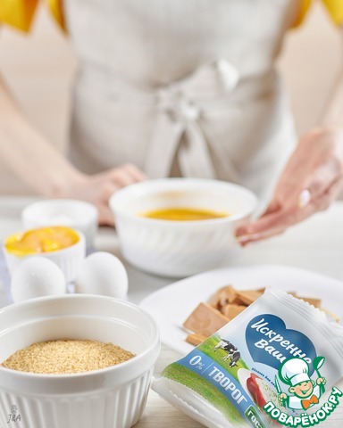 Пока основа застывает, приготовим сам чизкейк. Для него я выбрала творог ТМ "Искренне Ваш". У него очень приятный нежный вкус, никто не догадается, что мы использовали обезжиренный творог, сделав наш десерт немножко ПП.