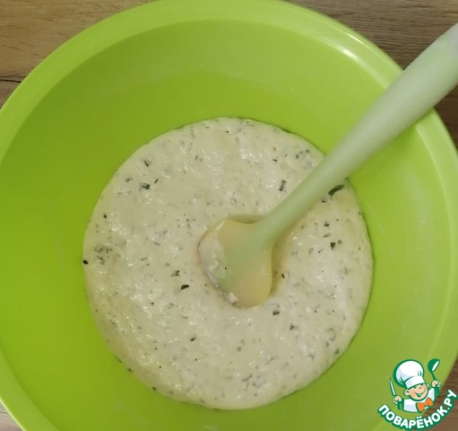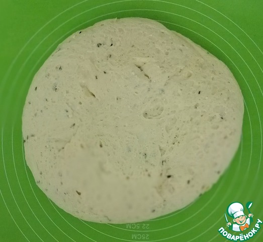Когда брожение дрожжей стало активным - добавила рубленный зелёный лук, можете зелень взять по своему вкусу.