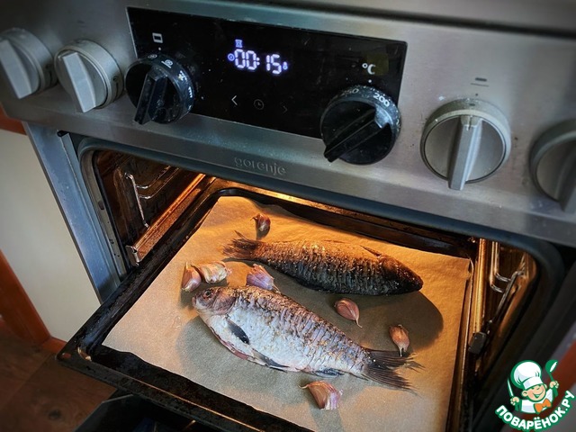 Вкуснейшее, бюджетное, не требующее специальных навыков в приготовлении блюдо. Готовится очень быстро из доступных продуктов. Подойдет на завтрак, обед и ужин, особенно тем, кто пристально следит за своей фигурой. Максимальное содержание белков при минимуме калорий. При данном способе приготовления в рыбе не остается мелких косточек, из-за которых бывает сложно есть карася. Блюдо обладает нежным сладковатым вкусом с нотками печеного чеснока.