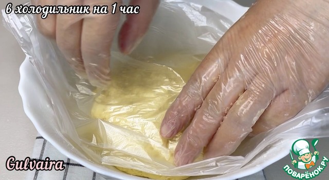 Далее накрыв тесто отправляем на 1 час в холодильник.